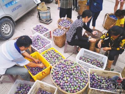 綏江縣南岸鎮(zhèn)李子收購(gòu)點(diǎn),工人們?cè)诮o李子篩選和分類(lèi)。