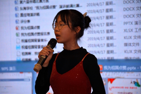 比賽中,每位選手都能緊扣主題,有的從身邊小事說起、有的從生居環(huán)境出發(fā)、有的以國(guó)事為點(diǎn)、有的以成長(zhǎng)為線……以小見大,講述了中華人民共和國(guó)成立70周年和改革開放40年的巨變,表達(dá)了他們對(duì)祖國(guó)的熱愛和自豪之情。選手們的誦講聲情并茂,時(shí)而慷慨激昂,時(shí)而舒緩動(dòng)情,引起強(qiáng)烈的震撼和共鳴,“為祖國(guó)點(diǎn)贊”之情油然而生。