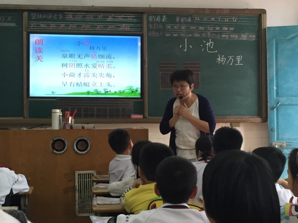 竹苑小學(xué)一年級翁瑞云老師為白沙灣小學(xué)帶去了一節(jié)常態(tài)示范課《小池》。翁老師抓住一年級小朋友的年齡特點,激勵孩子們大膽想象,勇敢表達(dá)。課上,翁老師巧妙地運用“游戲闖關(guān)”的方式,帶領(lǐng)孩子們在輕松愉快的課堂氛圍中闖過了朗讀關(guān)、背誦關(guān)、生字關(guān)、寫字關(guān)。孩子們在多種形式的朗讀中沉醉,一會兒老師情境帶讀,一會兒生生帶讀,一會兒韻律節(jié)奏讀,一會兒男女生比賽讀,一會兒起立表演讀。孩子們在朗讀中體會輕柔美麗的畫面,在朗讀中感受古詩的美妙。在寫字環(huán)節(jié)中,翁老師鼓勵孩子自己觀察發(fā)現(xiàn)字形特點,并帶著孩子們一邊讀口訣一邊書寫,讓生字教學(xué)在趣味中扎實地得以落實。