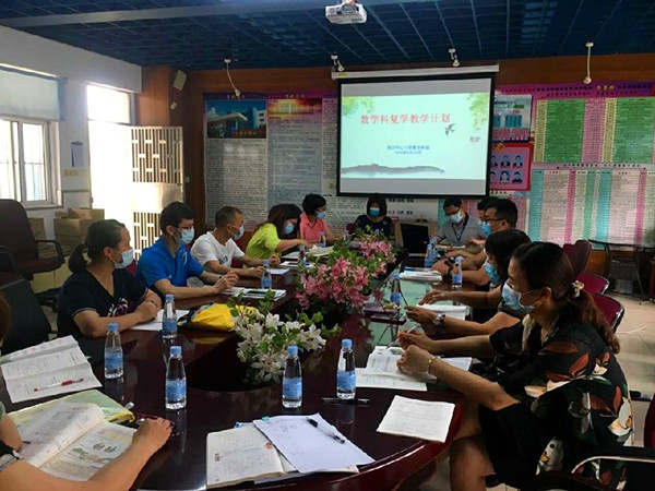 首先,吳文海副校長(zhǎng)對(duì)這次數(shù)學(xué)科復(fù)學(xué)教學(xué)計(jì)劃研討活動(dòng)進(jìn)行安排,明確活動(dòng)的具體要求。吳文海副校長(zhǎng)以自己所教的三(3)班數(shù)學(xué)為例子來介紹復(fù)學(xué)教學(xué)計(jì)劃的制定。他分別從上一學(xué)期學(xué)生成績(jī)基本情況分析、線上教育情況的分析、復(fù)學(xué)后提高教學(xué)質(zhì)量的具體措施、復(fù)學(xué)后教學(xué)進(jìn)度安排進(jìn)行詳細(xì)說明。接著,請(qǐng)教育事務(wù)指導(dǎo)中心黃鳳英教研員進(jìn)行指導(dǎo)。她指出復(fù)學(xué)后授課要按質(zhì)按量完成,要真正做到高效課堂。要把每天的教學(xué)內(nèi)容安排出來,以年級(jí)為單位嚴(yán)格制定教學(xué)進(jìn)度表,利用測(cè)試及時(shí)發(fā)現(xiàn)不足,然后制定補(bǔ)救措施。隨后,數(shù)學(xué)科組分年級(jí)進(jìn)行研討,制定復(fù)學(xué)后的教學(xué)計(jì)劃。