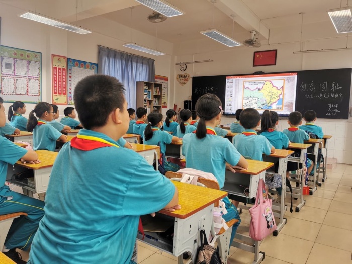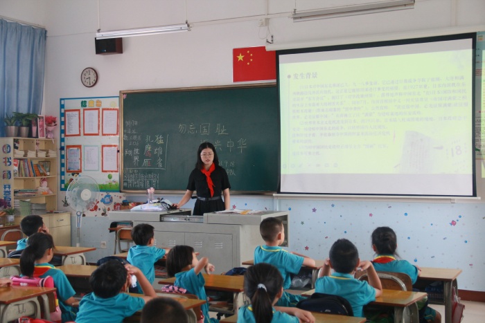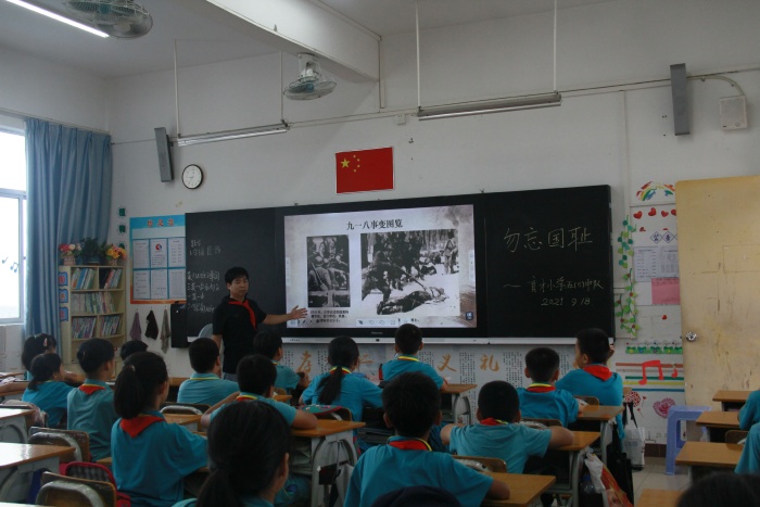 升旗儀式后,各中隊(duì)紛紛開展了愛國(guó)主義教育活動(dòng),各中隊(duì)輔導(dǎo)員帶領(lǐng)孩子們重溫了“九一八”歷史事件,回顧了革命先烈艱苦卓絕的抗戰(zhàn)歷史,告誡少年兒童們勿忘國(guó)恥,牢記歷史。