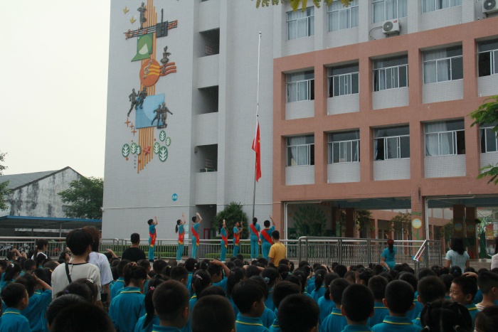 在升旗儀式上,學(xué)校的少先隊(duì)干部進(jìn)行國(guó)旗下講話,告誡廣大師生雖然“九一八”事變已成歷史,但苦難不能忘記,國(guó)恥更不能忘記。讓每位師生銘記“九一八”,立志報(bào)國(guó)情!