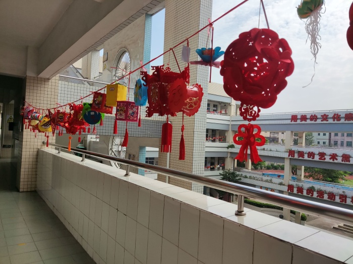 接著,三沙小學以年級為單位評選出近百個設計精巧、色彩繽紛、獨具匠心的燈籠作品。有的燈籠鮮艷熱忱,寄托濃濃的情思;有的燈籠古風溫婉,承載中秋佳節(jié)的祝福;有的燈籠實用精巧,暗含“變廢為寶”的巧思。它們懸掛在校園之中,學生們下課后就聚集在燈籠下,興奮地跟小伙伴介紹自己的燈籠,十分歡樂。