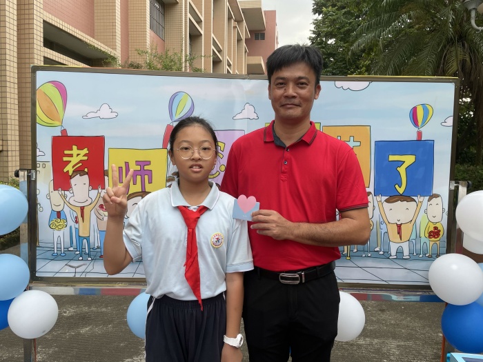 為了迎接一年一度的教師節(jié),旗北小學(xué)全體行政和體藝科組提前精心策劃,給旗北小學(xué)全體教師送上最真摯的祝福。上午7時(shí)30分,教學(xué)樓樓梯鋪上了鮮艷的紅地毯,裝點(diǎn)上節(jié)日的氣球,學(xué)生站在地毯兩側(cè),靜候旗北小學(xué)教師的到來(lái)。當(dāng)各位教師走上紅毯時(shí),兩旁學(xué)生一齊對(duì)老師說(shuō):“老師,您辛苦了,節(jié)日快樂(lè)!”隨后,學(xué)生向老師送出親手寫的賀卡并和老師合影留念,讓全體教師感受到了節(jié)日的驚喜。