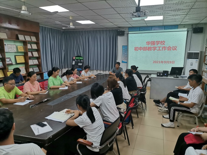 9月9日晚,華強學校初中部全體教師集中在學校會議室,召開教學工作會議。會議由主管初中部教學工作的周波主任主持。