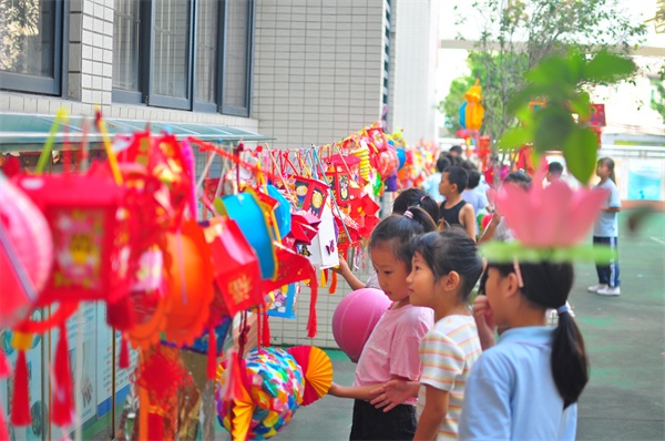 制作花燈,是中秋傳統(tǒng)習(xí)俗之一。課余時(shí)間,一至三年級(jí)的同學(xué)們與家長齊齊動(dòng)手,利用鐵絲、麻繩、彩紙等各種各樣的材料,你畫我涂,你剪我貼,共同參與制作了出創(chuàng)意無限的迎中秋燈籠。老師們將五顏六色的燈籠,整齊有序地懸掛起來,把校園裝扮得更漂亮了,為傳統(tǒng)的中秋佳節(jié)增添了幾分樂趣。