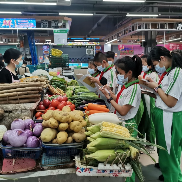 本次活動主要由馮建青老師策劃,參與的學生是六年級的孩子?;顒娱_展前他們先自行設計好調查表,并討論出調查的內容:認蔬菜的名稱;蔬菜的價格;蔬菜的進貨。馮老師特意向孩子們講解了開售前的準備工作以及調查訪問的注意事項:要有禮貌;注意訪問的技巧;做好調查訪問的記錄等等。一切準備就緒后,學生們帶著興奮的心情來到了學校附近的源昌結民市場開始他們的調查之旅。