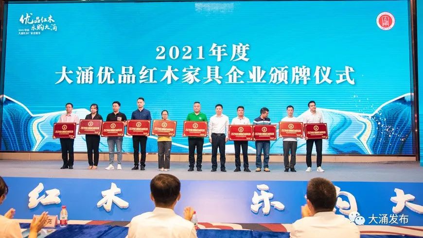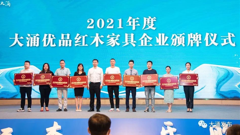 現(xiàn)場還向中山市伍氏大觀園家具有限公司等18家紅木企業(yè),頒發(fā)“2021年度優(yōu)品紅木家具企業(yè)”牌匾。