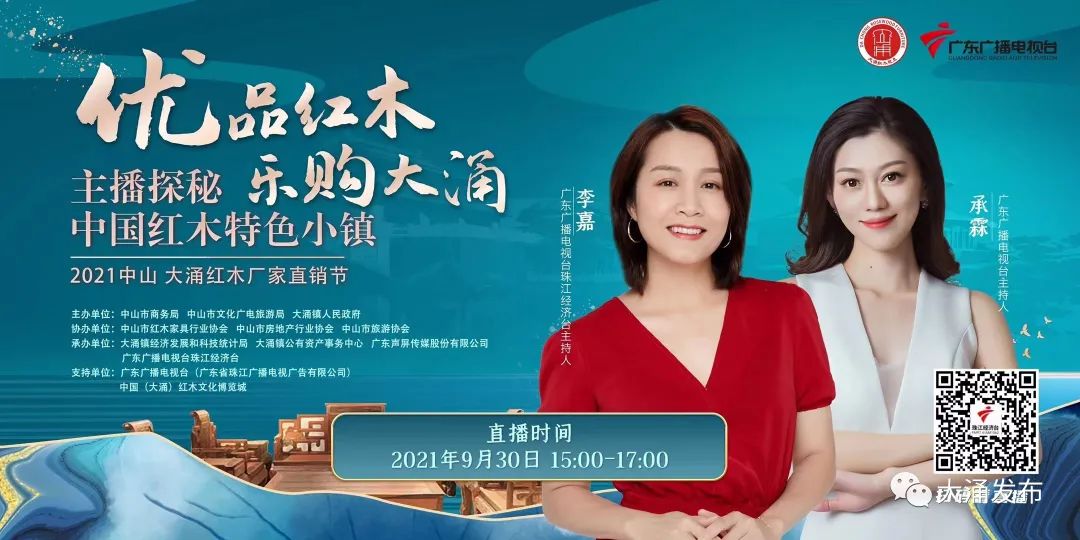 9月30日下午3:00,廣東廣播電視臺(tái)知名主持人李嘉、承霖將走進(jìn)紅木文化旅游特色小鎮(zhèn),直播探訪伍氏大觀園、紅古軒、地天泰、博大、印巷森刻等大涌紅木優(yōu)品企業(yè),與百萬粉絲觀眾展開長達(dá)兩個(gè)小時(shí)的線上紅木文化體驗(yàn)之旅。