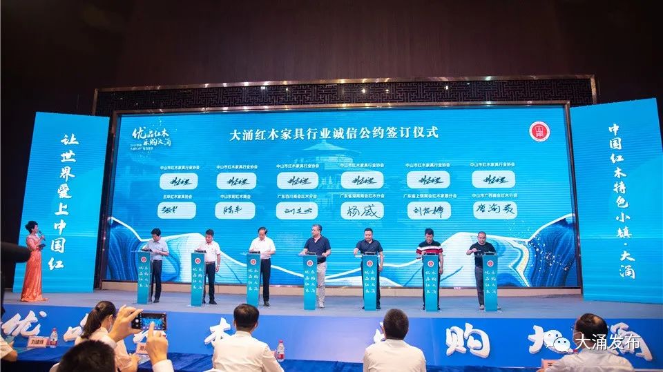 評(píng)選出大涌鎮(zhèn)18家紅木家具優(yōu)品企業(yè),7個(gè)行業(yè)協(xié)會(huì)共同簽訂誠信公約,以“誠信”拓市場,樹品牌。