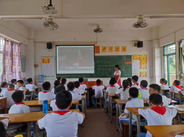 主題班會(huì)課上,老師們結(jié)合視頻為孩子們講述孟晚舟事件始末;展示央視實(shí)時(shí)跟蹤報(bào)道,人民在網(wǎng)上激情留言,深圳機(jī)場現(xiàn)場激動(dòng)人心的場面;傾聽了孟晚舟發(fā)表感言?!坝形逍羌t旗的地方,就有信念的燈塔。如果信念有顏色,那一定是中國紅!”深深地印入孩子們的心中。