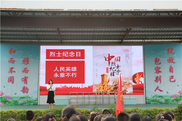 八點整,校園里響起莊嚴(yán)的國歌,鮮艷的五星紅旗緩緩升起,在場師生肅然而立,向國旗行注目禮,少先隊員行隊禮,進(jìn)行國家烈士紀(jì)念日升旗儀式。全體師生通過觀看愛國影片《祖國不會忘記》、聆聽黃嘉欣主任的發(fā)言《緬懷先烈 紅色故事傳承革命精神》、全體師生齊唱《少年》和《中國少年先鋒隊隊歌》等方式深切緬懷為民族獨立、人民解放、國家富強(qiáng)、人民幸福英勇獻(xiàn)身的革命先烈,傳承弘揚革命精神,不忘初心、牢記使命。