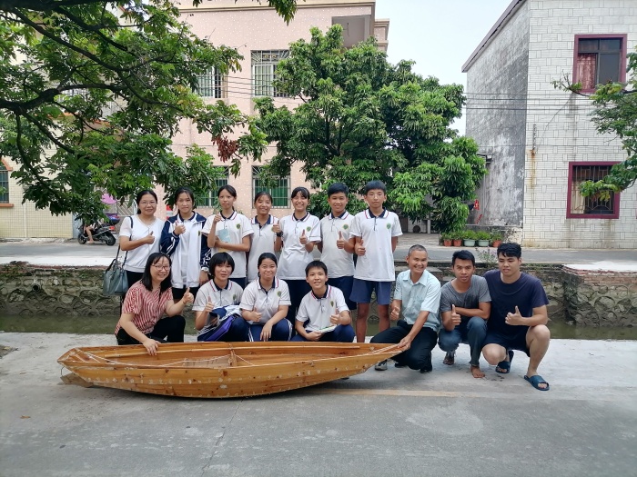 活動由牛角中學華逢梅老師和阜沙中學陳浩芳老師帶隊,前往牛角正河(阜沙鎮(zhèn)單人農艇訓練基地)開展研學。阜沙鎮(zhèn)單人農艇協(xié)會陳建華會長向同學們詳細介紹了單人農艇起源、農艇構造、功能和優(yōu)缺點等,同學們認真聆聽、記錄,并結合各自研學目標對會長和農艇隊員們進行訪談。