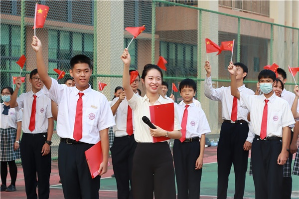 國(guó)慶將至,清歌飛揚(yáng),歡欣鼓舞喜洋洋。9月30日清晨,中山市一中在學(xué)校豐山球場(chǎng)舉行“不負(fù)時(shí)代 強(qiáng)國(guó)有我”迎國(guó)慶主題升旗儀式。現(xiàn)場(chǎng)近8000師生齊聚以鏗鏘誓言發(fā)出時(shí)代強(qiáng)音,以青春之聲為祖國(guó)獻(xiàn)禮,齊祝愿祖國(guó)繁榮昌盛。