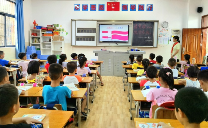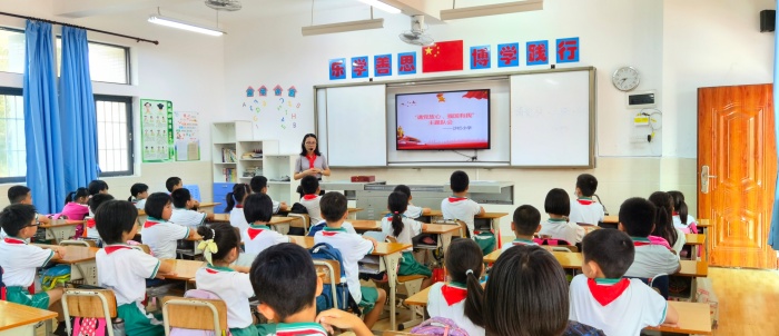隊會課上,各中隊輔導(dǎo)員帶領(lǐng)隊員重溫“請黨放心 強國有我”的獻詞,借此契機,利用“學(xué)習(xí)強國”平臺上資源,播放典型黨員楷模的故事,引導(dǎo)學(xué)生學(xué)習(xí)黨發(fā)展、斗爭、壯大過程中的光輝歷史和革命英雄事跡,學(xué)習(xí)他們無私奉獻的精神。結(jié)合即將到來的國慶節(jié),中隊輔導(dǎo)員也帶領(lǐng)隊員逐一了解國名的由來、建國時間、國旗、國徽含義等有關(guān)知識,認識到祖國的風(fēng)雨兼程,才有今天的繁榮昌盛,讓隊員們明白了作為新時代的少先隊員,要牢記使命,努力學(xué)習(xí),用實際行動為紅領(lǐng)巾增光添彩。經(jīng)過本節(jié)隊課,隊員們更將“請黨放心,強國有我”這一誓言內(nèi)化于心,外化于行。