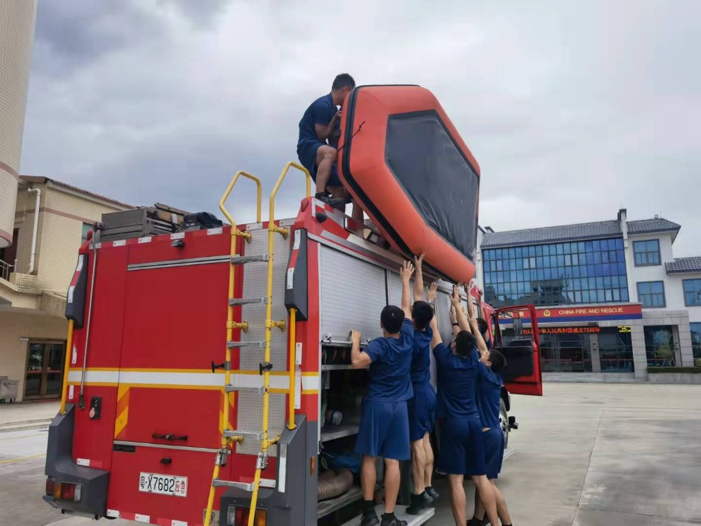 在執(zhí)勤器材方面,集結(jié)救援處置車輛10輛,其中消防車7輛,通信保障、后勤保障、搶險(xiǎn)救援指揮車各1輛;水域救援裝備集結(jié)150多件,橡皮艇3艘(緊急借調(diào)特勤2艘)、沖鋒舟2艘、救生衣45件、救生圈10個(gè)、水域救援服20套、救援繩500米。針對(duì)此次臺(tái)風(fēng)可能帶來內(nèi)澇、颶風(fēng)等次生災(zāi)害,準(zhǔn)備了手抬機(jī)動(dòng)泵3臺(tái),機(jī)動(dòng)鏈鋸5臺(tái)、金屬切割機(jī)4臺(tái)、機(jī)動(dòng)破拆工具組2套。同時(shí),吸取臺(tái)風(fēng)“獅子山”的處置經(jīng)驗(yàn),在全鎮(zhèn)安排三支前置力量前置執(zhí)勤點(diǎn)。三鄉(xiāng)站負(fù)責(zé)白石、平南、南龍、橋頭、烏石、平東、鴉崗片區(qū);三鄉(xiāng)專職隊(duì)(儷寶龍馬)負(fù)責(zé)大布、泉眼、雍陌、塘敢、橋頭、圩仔片區(qū);新圩執(zhí)勤點(diǎn)負(fù)責(zé)新圩、古鶴、前隴片區(qū)。