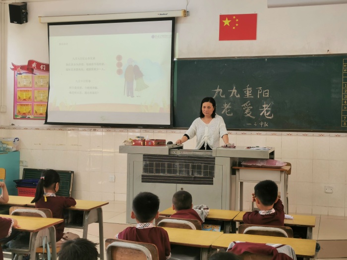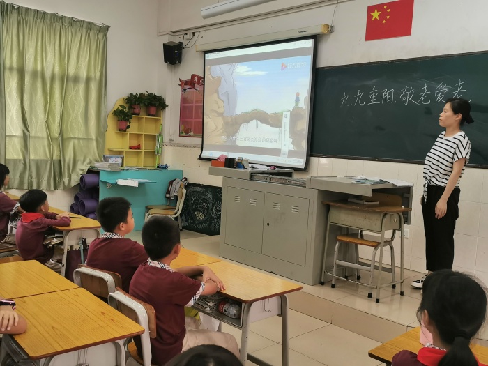 “百善孝為先" ,孝順父母,尊敬長輩,是中華民族的傳統(tǒng)美德。新圩小學(xué)德育處陳文麗主任先通過廣播向全校學(xué)生發(fā)出倡議,引導(dǎo)學(xué)生要弘揚中華民族尊老敬老的傳統(tǒng)美德,營造良好的愛老助老社會氛圍,展現(xiàn)當(dāng)代新圩水滴娃的精神風(fēng)貌,倡議學(xué)生一要樹立敬老之心,二要奉獻孝老之意,三傳遞助老之情,學(xué)會關(guān)愛身邊的每一位老人, 讓老年人(尤其是自己身邊的爺爺奶奶、外公外婆)在重陽佳節(jié)過得更有價值、有意義,讓他們體會到節(jié)日的快樂,讓他們的生活更加幸福。接著由班主任老師通過PPT給學(xué)生講解重陽節(jié)的由來及意義,透過視頻故事更直接生動地讓學(xué)生了解這一傳統(tǒng)節(jié)日---重陽節(jié)。