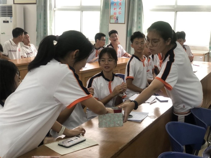 接下來,活動分批依次進(jìn)行。參賽選手抽簽后,根據(jù)順序前往直播室候場備賽,其余選手回到教室通過一體機(jī)觀摩賽況。直播間鏡頭下的選手們自信開朗,侃侃而談,與賽場外觀摩直播的師生積極互動,涌現(xiàn)出一批“人氣主播”。專業(yè)課教師根據(jù)參賽選手的表現(xiàn)進(jìn)行實(shí)時(shí)點(diǎn)評,與在教室收看直播的同學(xué)們分享直播干貨,同學(xué)們認(rèn)真地進(jìn)行學(xué)習(xí)記錄,并紛紛表示獲益良多。