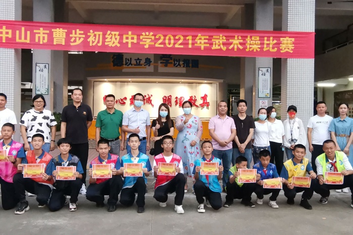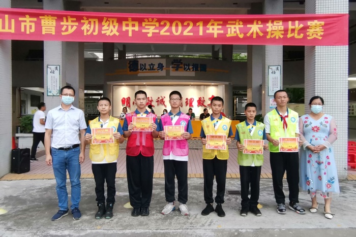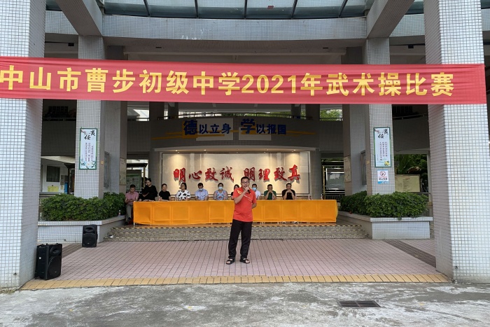 為了更好地促進(jìn)曹步初級(jí)中學(xué)學(xué)生身體素質(zhì)的提高,全面推行學(xué)校特色項(xiàng)目的發(fā)展,促進(jìn)體藝2+2項(xiàng)目的建設(shè),檢測(cè)初一、初二學(xué)生課間操的學(xué)習(xí)成果,以“習(xí)慣養(yǎng)成”為原則,規(guī)范學(xué)校管理,加強(qiáng)班風(fēng)班貌和精神文明建設(shè),加強(qiáng)德育、智育、體育的發(fā)展和合作,全面增強(qiáng)班級(jí)凝聚力,促進(jìn)學(xué)風(fēng)、校風(fēng)建設(shè),使課間達(dá)到規(guī)范化、熟練化、美觀化,2021年10月20日下午,曹步初級(jí)中學(xué)在中大堂前舉行了初一、初二級(jí)課間操行為規(guī)范比賽暨武術(shù)操比賽,本次活動(dòng)由體育老師賀坤主持,初一初二全體同學(xué)和部分家長參加了本次活動(dòng),學(xué)校領(lǐng)導(dǎo)和部分家委擔(dān)任本次活動(dòng)的評(píng)委。