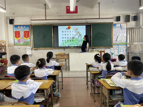 課上,各班老師通過圖片、視頻等方式,向同學們展示了糧食從播種、生長、收獲到加工的過程,讓同學們體會到糧食的來之不易。同學們進行了熱烈的討論,他們暢所欲言,討論身邊的浪費現(xiàn)象,并積極參與到“如何制止餐飲浪費”這一問題的討論之中,大家紛紛表示會認真踐行光盤行動,樹立節(jié)約光榮、浪費可恥的意識,做到勤儉節(jié)約,不浪費、不奢侈、不攀比。