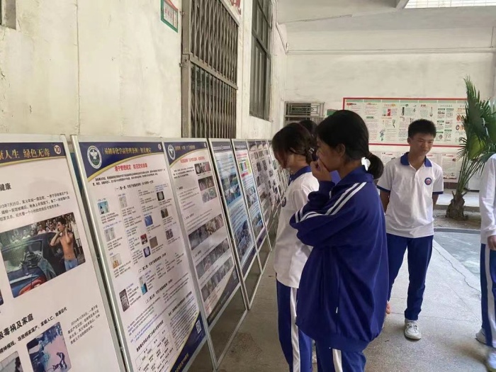 為深入開展毒品預(yù)防教育活動(dòng),中山市古鎮(zhèn)高級(jí)中學(xué)于10月24-26日聯(lián)合中山市強(qiáng)制戒毒所舉辦了禁毒圖片展覽和仿真毒品展覽。10月27日下午,中山市司法行政禁毒宣講團(tuán)的林苑警官為高一學(xué)生開展了以“健康人生,綠色無毒”為主題的禁毒教育講座,學(xué)校德育處主任王學(xué)智、副主任楊寶輝、高一年級(jí)主任張電坤、副主任劉雄萬、相關(guān)工作人員及高一學(xué)生參與了本次講座。