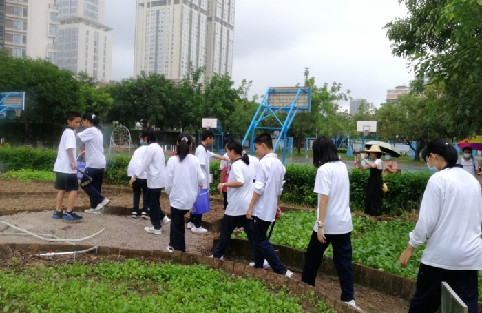 坦洲實(shí)驗(yàn)中學(xué)的古娜芬老師帶來(lái)了一節(jié)精彩的《菜苗的移栽》公開(kāi)課。她先帶領(lǐng)學(xué)生們上了10分鐘的理論課,了解菜苗移栽的操作方法和注意事項(xiàng),然后讓學(xué)生們以9人為一組自由組隊(duì),領(lǐng)取勞動(dòng)工具,進(jìn)行勞動(dòng)分工。學(xué)生們興高采烈地帶著工具到學(xué)校的勞動(dòng)教育基地進(jìn)行種菜勞動(dòng)。他們有的起苗,有的挖窩,有的種菜,有的澆水,干的不亦樂(lè)乎。