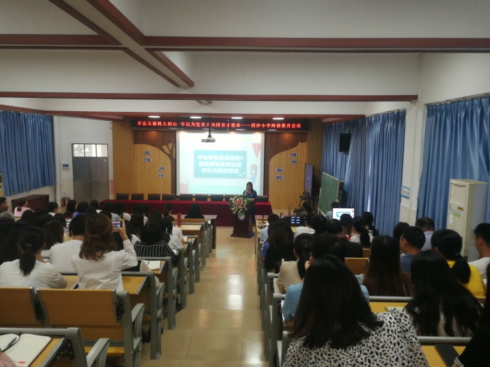 2021年11月3日下午,四沙小學校長歐慧芳組織全體教師在階梯室開展了“不忘立德樹人初心 牢記為黨育人為國育才使命”主題師德教育。