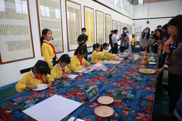 在小導(dǎo)游的帶領(lǐng)下,考察團(tuán)首先來(lái)到民和小學(xué)體藝館,參觀景泰藍(lán)書(shū)畫(huà)作品。近年,民和小學(xué)提出了“高質(zhì)量發(fā)展”的奮斗目標(biāo),特別是在落實(shí)“雙減”政策中,學(xué)校為學(xué)生提供了扎實(shí)而豐富的課后服務(wù)課程。隨后,考察團(tuán)駐足觀看了師生的活力跑操,并對(duì)民和師生朝氣蓬勃、奮發(fā)向上的精神面貌給予了充分肯定。