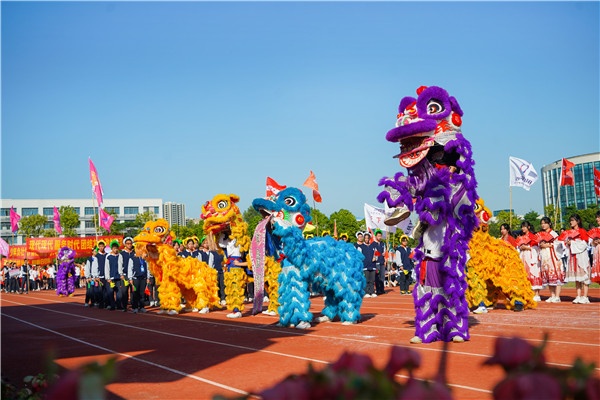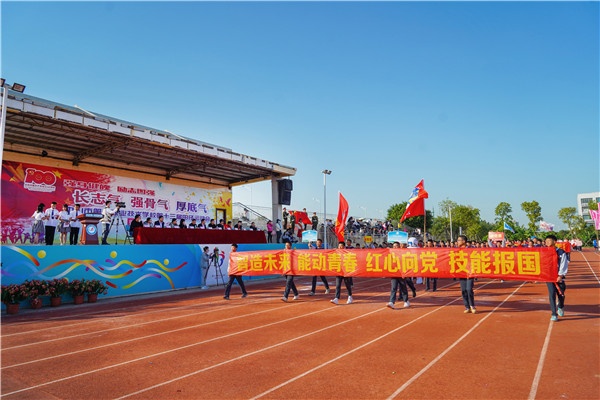 操場上彩旗招展,伴隨著激昂的運動員進行曲,國旗護衛(wèi)隊、校旗護衛(wèi)隊、運動會會徽、彩旗方陣,裁判員方陣依次入場。由相同專業(yè)組合成的25個方陣穿上統(tǒng)一的服裝,排著整齊的隊伍,邁著矯健的步伐,英姿颯爽、神采飛揚,意氣風(fēng)發(fā)的走向主席臺接受檢閱。各方陣都在嘹亮的口號之后,結(jié)合專業(yè)建設(shè)進行了主題鮮明、獨具匠心的才藝表演。節(jié)目形式多樣、精彩紛呈,有詩朗誦、有歌曲、有舞蹈、有情景劇、有舞獅……同學(xué)們用不同的形式展示專業(yè)技能、專業(yè)特色文化,充分體現(xiàn)了學(xué)生們的朝氣、斗志、團結(jié)。