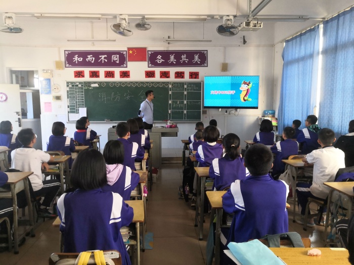 班會(huì)課上,班主任先講解了“消防安全日”來源。11月9日的月日數(shù)恰好與火警電話號(hào)碼119相同,而且這一天前后,正值風(fēng)干物燥、火災(zāi)多發(fā)之際,全國各地都在緊鑼密鼓地開展冬季防火工作。為增加全民的消防安全意識(shí),使“119”更加深入人心,公安部將每年的11月9日定為全國的“消防宣傳日”。然后,從“火災(zāi)的危險(xiǎn)性、燃燒必須具備的條件、火場上如何逃生、如何報(bào)警”四個(gè)方面介紹在家里和學(xué)校如何預(yù)防火災(zāi)。各班還通過播放視頻講解了在發(fā)生火災(zāi)時(shí)要立即離開危險(xiǎn)區(qū)、選擇簡便安全的通道和疏散設(shè)施、使用簡便防護(hù)器材、自制簡易救生器材、尋求暫時(shí)避難區(qū)域。