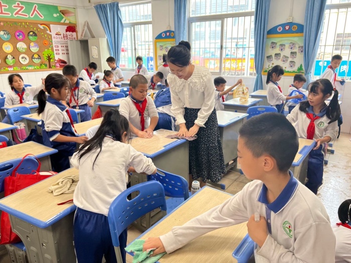 為搞好本次大掃除,各班老師對(duì)各責(zé)任區(qū)衛(wèi)生清潔工作進(jìn)行了具體部署。同學(xué)們?cè)诎嘀魅蔚挠H自帶領(lǐng)下,全體總動(dòng)員,先整理了書包,然后對(duì)班里的門窗、地面、桌椅、圖書角等衛(wèi)生區(qū),尤其是衛(wèi)生死角進(jìn)行了認(rèn)真打掃清理。