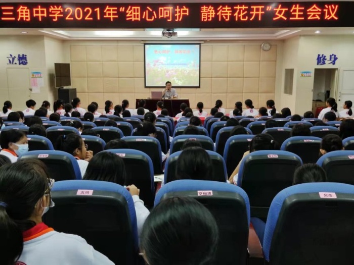 為引導學生正確認識青春期,增強自我保護意識,幫助女生理解生命意義,化解成長中的困惑和煩惱,11月2日,三角中學在學校報告廳舉行主題為“細心呵護,靜待花開”2021年女生會議。