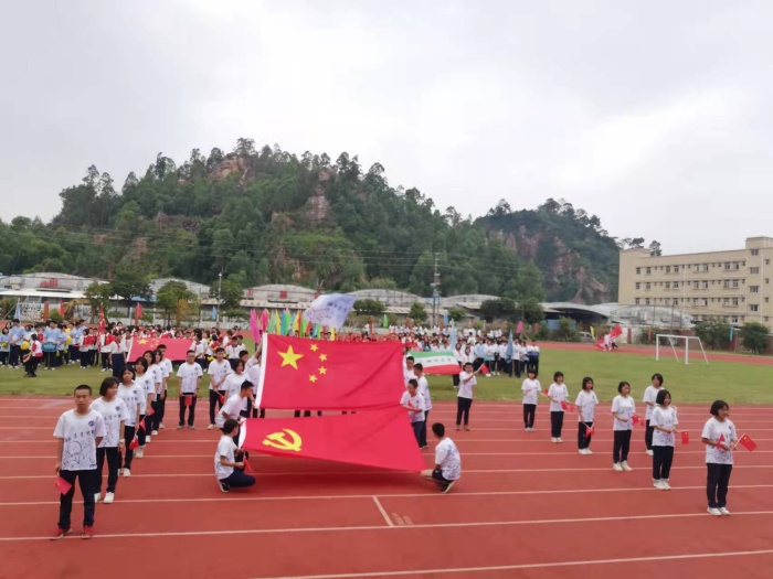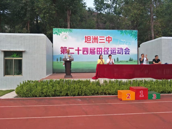 隨后,朱漢業(yè)校長上臺致辭,肯定了坦洲鎮(zhèn)第三初級中學田徑運動會開辦以來取得的成績,并對本屆運動會提出希望與要求,一聲堅定而有力的 “坦洲鎮(zhèn)第三初級中學第24屆田徑運動會開幕”,預示著運動會正式開始。此時,國歌奏響,禮炮高鳴,全校師生歡呼雀躍。接著,德育處艾金全主任代表學校作了發(fā)言,他希望全體同學們能以本屆運動會為契機,增強體魄、凝聚人心,并預祝本屆田徑運動會圓滿成功。