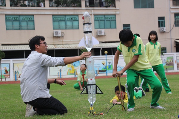 此次科技節(jié)活動(dòng)內(nèi)容豐富多樣,表演精彩紛呈。首先由馬成海副校長(zhǎng)致詞,馬成海副校長(zhǎng)肯定了學(xué)校在過(guò)去幾年的科技節(jié)活動(dòng)中,學(xué)校在市鎮(zhèn)中所取得的一系列優(yōu)異成績(jī),對(duì)同學(xué)們積極探索科技世界,勇于發(fā)揮想象,參與科技小制作活動(dòng)表示高度贊揚(yáng)。同時(shí),馬校長(zhǎng)更希望同學(xué)們能夠不斷創(chuàng)新,不斷進(jìn)取,從小在心中打下科技創(chuàng)作之心,為科技世界的發(fā)展發(fā)揮更好的作用。接著,六年級(jí)陳小玲同學(xué)向全體同學(xué)發(fā)出倡議,希望同學(xué)們積極參與到科技活動(dòng)中去,培養(yǎng)創(chuàng)新意識(shí),為國(guó)家的科技發(fā)展“有一分熱,發(fā)一分光”?;顒?dòng)在科技表演中推向了高潮,學(xué)校航模社團(tuán)的同學(xué)們進(jìn)行了無(wú)人機(jī)飛行表演,航模社團(tuán)老師更是為全體師生進(jìn)行了無(wú)人機(jī)高空表演,在社團(tuán)老師的操縱下,拖著長(zhǎng)長(zhǎng)彩帶的無(wú)人機(jī),時(shí)而直擊蒼穹,時(shí)而呼嘯而下,時(shí)而上下翻飛,時(shí)而高空盤旋。學(xué)校林志能老師還帶領(lǐng)六(4)、六(6)班學(xué)生進(jìn)行了水火箭發(fā)射表演。無(wú)論是高空的無(wú)人機(jī),還是水火箭的每一次成功升空,都贏得了同學(xué)們一陣陣歡呼聲和熱烈的掌聲,仰望天空的小眼睛都閃爍著期盼的光芒,承載著飛天夢(mèng)想。表演結(jié)束后,同學(xué)們還參觀了科技作品擺展,包括科技創(chuàng)新成果、少年兒童科幻畫作品、植物標(biāo)本及葉脈書簽制作作品等。在班級(jí)精心布置的擺展前,一件件創(chuàng)新科技成果、一份份精美的植物標(biāo)本及葉脈書簽作品陳列在桌子上,同學(xué)們胸有成竹地向評(píng)委詳細(xì)講解自己的作品,得到了評(píng)委老師們的肯定和贊許。