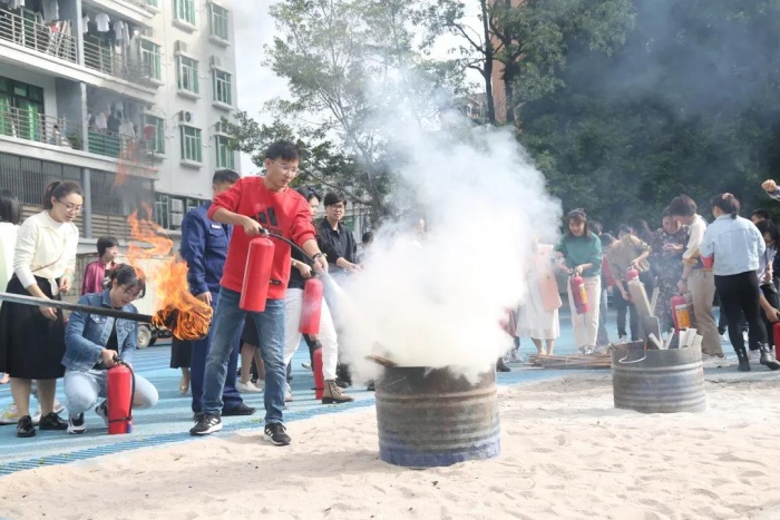 為了讓教職人員進(jìn)一步掌握消防知識(shí)和正確使用滅火器,演練結(jié)束后,學(xué)校請?zhí)厍谡救藛T再次進(jìn)行消防知識(shí)培訓(xùn)和現(xiàn)場滅火教學(xué),部分教師、保安、后勤人員參加了培訓(xùn),并在培訓(xùn)結(jié)束后,手持滅火筒對準(zhǔn)火源進(jìn)行滅火操作,通過親身實(shí)踐,熟練掌握滅火器的正確使用方法。