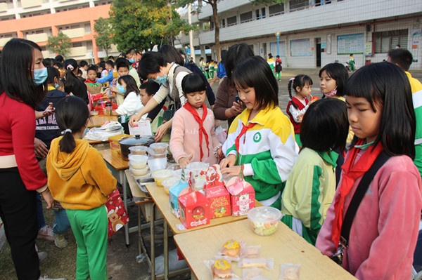 若問阜沙中心小學的孩子們最喜歡什么活動?你聽到的答案一定是“愛心義賣”這四個字。2021年12月24日,阜沙中心小學一年一度的愛心義賣活動在學校操場跑道上再一次拉開了帷幕。