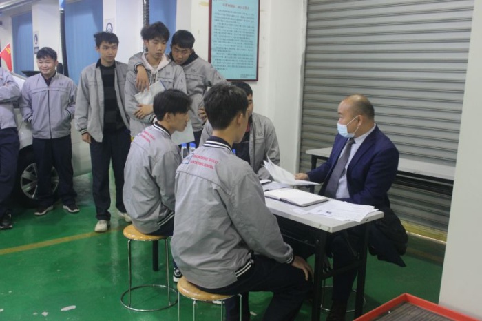 本次供需見面會共有中山市金寧汽車集團(tuán)、中山市中裕雷克薩斯4S店、中山三聯(lián)豐田4S店、中山市惠通之星奔馳4S店等4家中山汽車服務(wù)行業(yè)的龍頭企業(yè)參加,提供機(jī)修、汽車銷售、鈑噴、服務(wù)接待和配件等多個崗位。19IMI班的同學(xué)們認(rèn)真聽取企業(yè)介紹和崗位介紹,結(jié)合自身的需求踴躍投出簡歷,與企業(yè)現(xiàn)場招聘工作人員進(jìn)行真誠交流,他們的優(yōu)秀表現(xiàn)讓企業(yè)十分滿意。其中中裕雷克薩斯的李建軍經(jīng)理對本班的6名云南學(xué)生和有強(qiáng)烈做噴圖意向的李克凡同學(xué)情有獨(dú)鐘,這7名學(xué)生現(xiàn)場被企業(yè)聘用并承諾實(shí)習(xí)工資約每月2500元。另外,惠通之星和三聯(lián)豐田兩家4S店的人事經(jīng)理對學(xué)校推薦的實(shí)習(xí)生直接錄用,金寧集團(tuán)高端的新能源汽車崗位對學(xué)生更具吸引力。