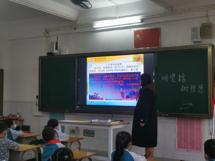 下午的班隊課,各班中隊輔導員的精心準備,主題教育開展非常順利?;顒赢斨?,首先各班中隊輔導員圍繞“什么是理想?”讓隊員們了解理想的意義和重要性。接著,引導學生發(fā)揮想象“理想像什么?”讓學生暢所欲言。緊接著,通過用《一個孩子的夢想》的故事和大量數(shù)據(jù)的分析,讓隊員們討論:如何實現(xiàn)自己的理想?將來為了實現(xiàn)理想做怎樣的準備?現(xiàn)實生活哪些事情最容易影響我們的意志,原因是什么?該如何處理?讓隊員們在討論中明白樹立理想的重要性,激發(fā)了全體隊員樹立理想、刻苦學習、報效祖國的信心和熱情。最后,通過欣賞古人理想的故事和朗讀關(guān)于理想的名人名言等活動形式,懂得實現(xiàn)理想應不懼困難,通過不斷的努力奮斗而實現(xiàn)。