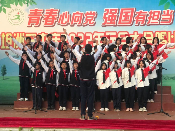 當(dāng)日歷翻開新的一頁,小樹又要增加一個年輪,我們歡聚一堂,唱響青春。二2班以一首《團(tuán)結(jié)就是力量》拉開大合唱帷幕,雄厚有力、整齊劃一的聲音傳遞著中華兒女勠力同心,共克時艱的決心與信心。愛國,是一種堅定的民族精神,是一種振興中華的責(zé)任感。二1班通過一首《我的中國心》向全體師生表達(dá)了一種強(qiáng)大的精神力量,不畏艱難險阻,創(chuàng)造屬于我們祖國的輝煌成就。未來屬于青年,希望寄予青年。一3班通過一首《少年中國說》述說著青年的夢想,青年的努力以及青年對未來的憧憬、期望,說唱結(jié)合,展現(xiàn)青年的活力與朝氣。黃河孕育偉大的中華文明,三2班以一首《保衛(wèi)黃河》唱出對黃河的禮贊,歌曲聲音洪亮,氣勢恢弘,鋼琴伴奏,增添了獨特的味道。每個周一,國歌想起,五星紅旗冉冉升起,三3班通過男女輪唱、齊唱等方式演奏《紅旗飄飄》,唱出“此生無悔入華夏”的驕傲與自豪。2021年,我們迎來建黨100周年,100年來,我們祖國發(fā)生翻天覆地的變化,三1班通過深情演繹一首《我愛你中國》表達(dá)了對祖國母親無限的感激之情。中華少年,風(fēng)華正茂,少年的夢就是中國夢,一2班通過一首《少年強(qiáng)》將大合唱推向高潮,慷慨激昂的曲調(diào),讓我們相信少年的未來就是中國的未來。沒有中國共產(chǎn)黨,就沒有現(xiàn)代化的中國,一1班廖文輝、李家欣以一段精彩的演講引入一首《沒有共產(chǎn)黨就沒有新中國》,科技創(chuàng)造未來,伴隨著一面黨旗從空中飛過,一1班放聲歌唱,深情傾訴對中國共產(chǎn)黨的驕傲與自豪。初心不忘青春志、匠心共筑中國夢,教師代表卞堪佐、吳境聰、黎小玲、劉秀平、肖偉芳領(lǐng)唱,全校師生共同演繹《不忘初心》,嘹亮的歌聲將此次大合唱落下帷幕。