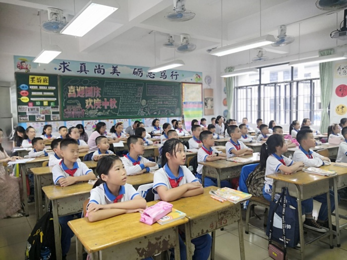 第一節(jié)課,各年級在備課組長的組織下,圍繞科組的研討主題,利用小組合作的形式開展“一師一課,一課一議”教學研討活動。一年級許桂玲老師為大家?guī)砹嘶顫娪腥さ摹督稀?;二年級陳綺琪老師帶領孩子們共同領略《日月潭》的美麗景色;四年級的伍尚金老師用詼諧的語言帶領大家學習了《蟋蟀的住宅》;在劉艷玲老師的帶動下,五(4)班的孩子都沉浸在《父愛之舟》的感動中;在王紅亞老師的引導下,六(4)班的孩子在《青山不老》的學習中,感受老人與青山共存的精神,讓綠色流進每個孩子的心中。