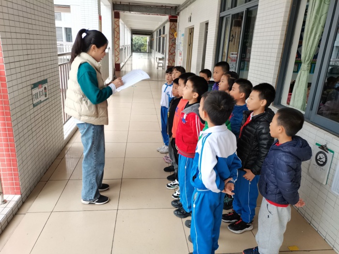 鎮(zhèn)南小學英語科組長陳虹老師在測試前認真組織英語組教師開會部署相關工作。12月25日下午,在班主任老師的協(xié)助下,英語組老師到所測試的班級對每個孩子一一進行測試。本次口語測試考察的內(nèi)容為單詞、歌曲、日常對話問答等。大部分學生都能根據(jù)老師的要求,做到單詞發(fā)音準確,流利跟唱歌曲并且能自信地回答老師的問題。