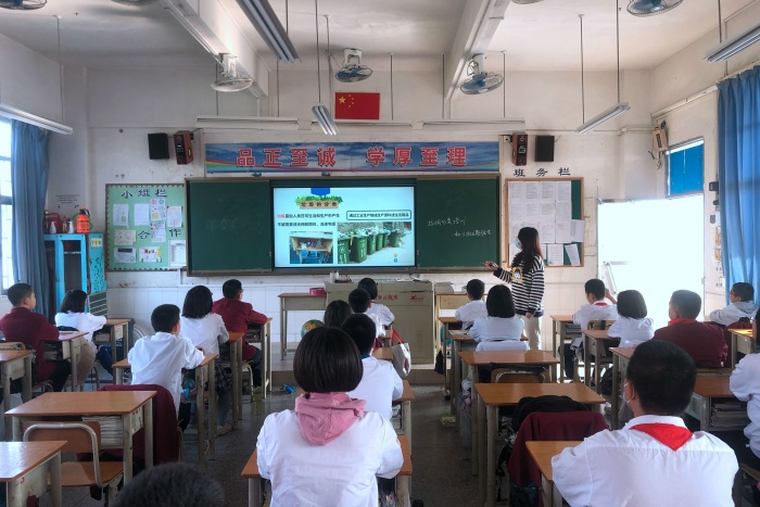 首先班主任黃肖宇老師向同學(xué)們介紹了垃圾日常的處理方式:衛(wèi)生填埋、焚燒、堆肥、資源返還。聽了老師的介紹,同學(xué)們?nèi)粲兴迹涸瓉砥饺兆畈涣粢獾?、隨手丟棄的垃圾,對(duì)環(huán)境還有這么重要的影響,垃圾分類真的很有必要!