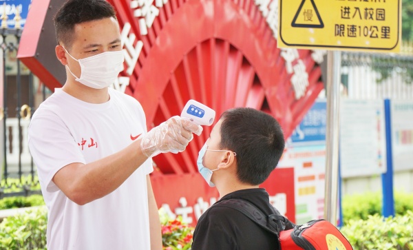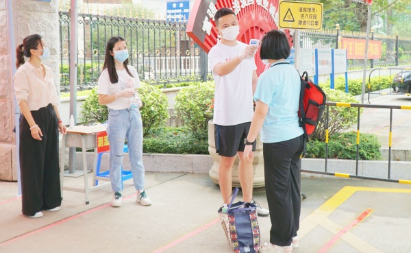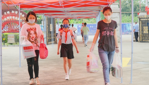 第一天的工作顯得尤其重要,所有班主任早早進(jìn)入教室,迎接久別的孩子。雖然是錯(cuò)峰返校,人員不密集,但是大家對安全一刻沒有放松。為了減少學(xué)生與外來人員接觸的機(jī)會(huì),按照上級統(tǒng)一部署要求,首先要把好進(jìn)校門第一關(guān)。相關(guān)老師和工作人員都按照規(guī)定提前到崗,履行職責(zé)。學(xué)生抵達(dá)學(xué)校后,除學(xué)生本人可以進(jìn)入校園外,學(xué)生家長、其他同行人員、車輛均不得進(jìn)入校園。所有沒有課的老師配合保安人員維持現(xiàn)場秩序,確保每個(gè)學(xué)生間隔一米排隊(duì)等候。學(xué)生出示健康碼,佩戴好口罩才能進(jìn)入校園,保安人員對學(xué)生進(jìn)行了嚴(yán)格的體溫檢測,噴灑免洗洗手液,嚴(yán)格把好進(jìn)門關(guān)。學(xué)生中有帶行李和文具的,將行李和文具放置在設(shè)定的消毒區(qū)域,由工作人員對其進(jìn)行消殺后,學(xué)生方可攜帶行李進(jìn)入校園。默契的配合,一切都顯得那么自然而溫馨,疫情無情,校園有愛……
