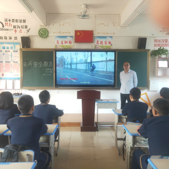 在學校安全處的統(tǒng)一組織下,各班開展了以“交通安全”為主題的班會活動。課上,小學各年級學生通過觀看通俗易懂,具有趣味性的圖文、動畫視頻教育資源,讓學生在輕松活躍的氛圍中學習相關的交通安全知識;中學各班則通過觀看一些交通教育短片和監(jiān)控錄像,了解平時生活中真實發(fā)生的交通事故,并掌握了一些遇險自救知識,提高了學生對發(fā)生交通意外時的自救能力?;顒幼詈?,各班班主任對交通安全知識進行了強調、補充和總結,學生們掌握了怎樣安全行走、騎車和乘車的知識。