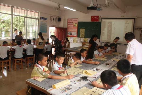 大課間活動(dòng)結(jié)束之后便分別是小學(xué)的第二課堂和初中的文化課展示。小班制教學(xué)和第二課堂的開設(shè)是我校自辦學(xué)以來的亮點(diǎn)和特色,小班化教學(xué)可以兼顧到課堂上的每一個(gè)學(xué)生,最大程度地做到因材施教,而第二課堂的開設(shè)則是現(xiàn)代社會(huì)素質(zhì)教育和學(xué)生德智體美全面發(fā)展的需要。在第二課堂上,孩子們一幅幅優(yōu)秀的作品、一曲曲精妙的彈奏頻頻讓家長(zhǎng)們感到驚喜,家長(zhǎng)們對(duì)孩子一個(gè)學(xué)期以來的出色表現(xiàn)和巨大進(jìn)步感到欣慰不已。初中的文化課上,十三位語、數(shù)、英老師創(chuàng)設(shè)趣味化、活動(dòng)化的教學(xué)情境以及生活化、情景化的教學(xué)環(huán)境,深深吸引了每一位孩子,贏得了家長(zhǎng)的一致好評(píng)。家長(zhǎng)們?cè)谟^摩學(xué)生的學(xué)科展示活動(dòng)過程中,看到了學(xué)生的進(jìn)步與成長(zhǎng),由衷感到欣喜。老師對(duì)孩子點(diǎn)點(diǎn)滴滴的關(guān)愛,家長(zhǎng)們盡收眼底,感動(dòng)了在座的每一個(gè)家長(zhǎng)。