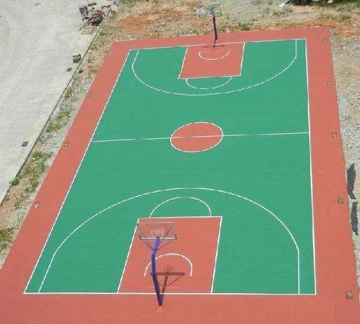 橡膠?;騊U顆粒、顏料、助劑、填料組成。塑膠籃球場具有平整度