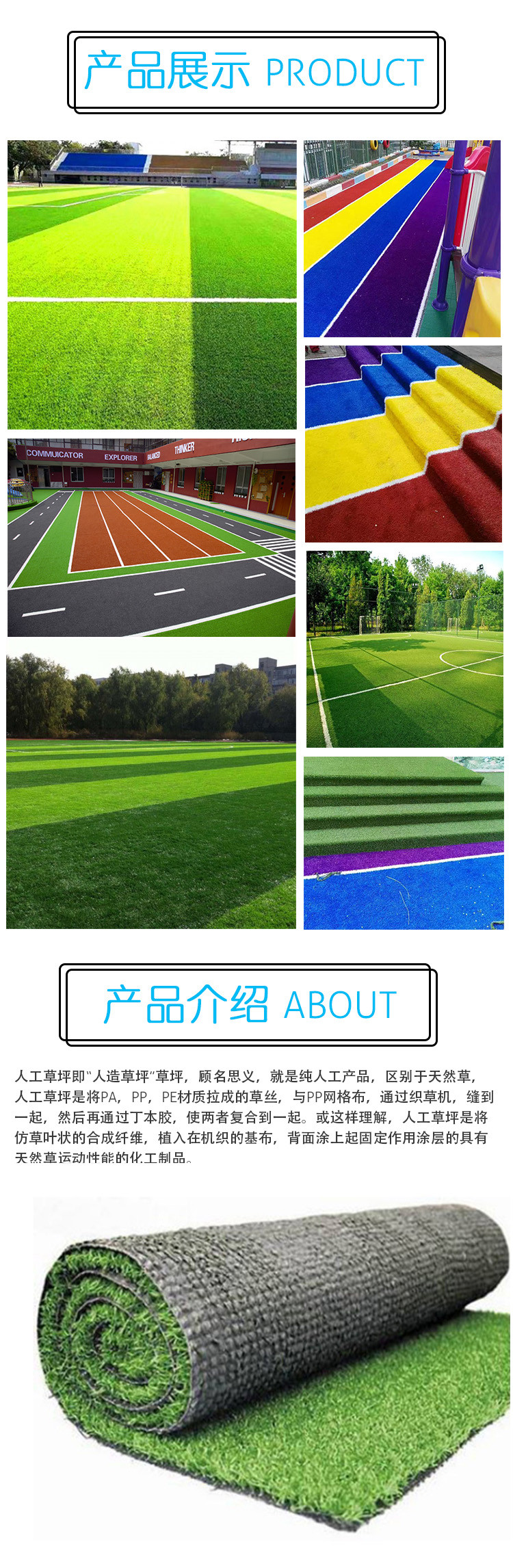 人工草坪即“人造草坪”草坪,顧名思義,就是純人工產品,區(qū)別于天然草,人工草坪是將PA,PP,PE材質拉成的草絲,與PP網格布,通過織草機,縫到一起,然后再通過丁本膠,使兩者復合到一起?;蜻@樣理解,人工草坪是將仿草葉狀的合成纖維,植入在機織的基布,背面涂上起固定作用涂層的具有天然草運動性能的化工制品。