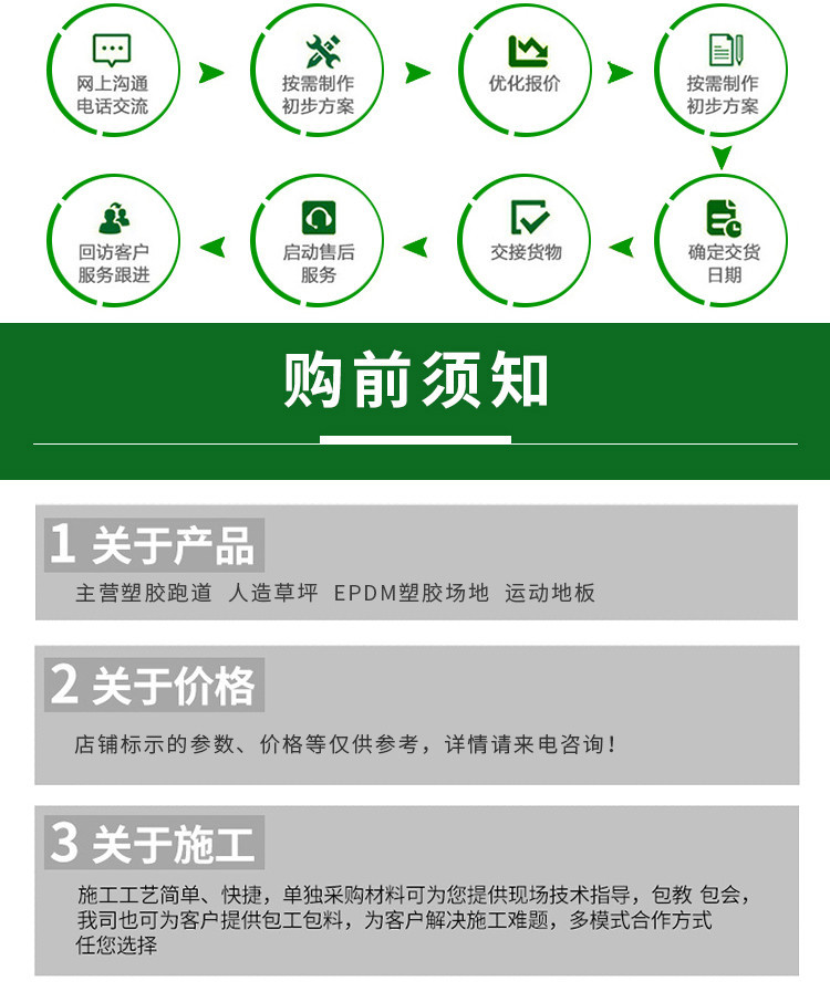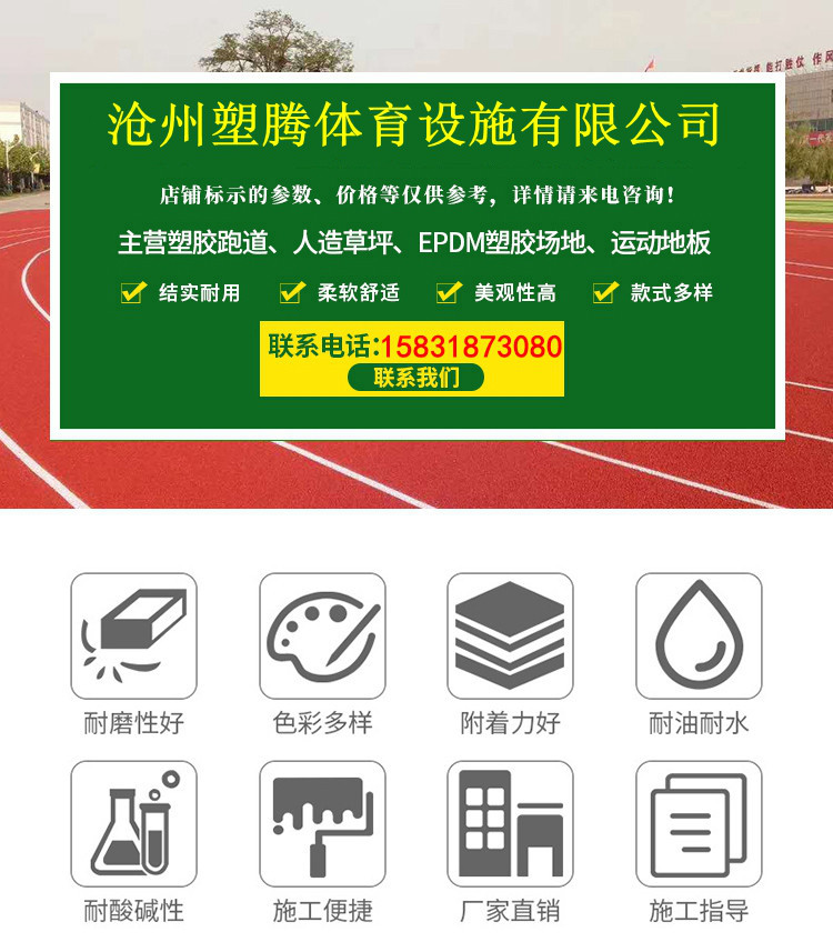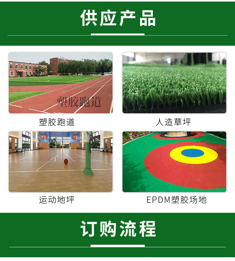 ??我公司擁有先進(jìn)的工藝技術(shù)和機(jī)械加工設(shè)備。專業(yè)生產(chǎn)各種規(guī)格的人工草坪、EPDM彩色橡膠顆粒、膠水等。廣泛應(yīng)用于塑膠跑道、籃球場、足球場、網(wǎng)球場、游泳池、體育場館運(yùn)動地面、幼兒園防滑地面等。該產(chǎn)品具有綠色環(huán)保、色澤穩(wěn)定且抗紫外線、耐磨損、彈性好,使用壽命長,易鋪設(shè)保養(yǎng)等優(yōu)點(diǎn)。產(chǎn)品經(jīng)上海和深圳檢測中心檢測,各項技術(shù)指標(biāo)全部合格,達(dá)到行業(yè)標(biāo)準(zhǔn)。 我們本著以質(zhì)量求生存,以周到的服務(wù)求發(fā)展,熱忱歡迎海內(nèi)外廣大客戶和我們合作,攜手共創(chuàng)輝煌!