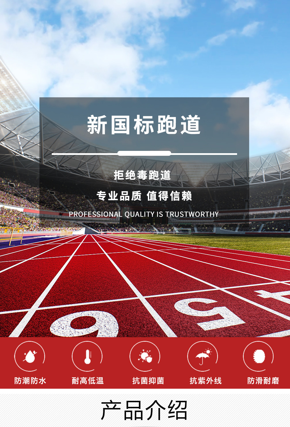 美創(chuàng)新國標(biāo)跑道 塑膠跑道 塑膠顆粒 抗磨性彈性好
