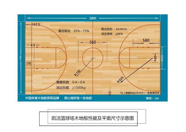 凱潔地板性能特點(diǎn): 產(chǎn)品名稱(chēng):運(yùn)動(dòng)型木地板 用材:實(shí)木運(yùn)動(dòng)地板 隔離膜 承載板 彈性龍骨 減震膠墊 執(zhí)行標(biāo)準(zhǔn):GB/T20239-2015 使用范圍:室內(nèi)籃球、羽毛球、舞臺(tái)、足排球、壁球、健身等綜合性運(yùn)動(dòng)場(chǎng)所。 使用年限:25年 二 、變形 地板在動(dòng)能荷載作用下,變形的能力取決于彈性、粘度和彈性層厚度。過(guò)多的變形會(huì)降低腳的安全性,增加扭傷發(fā)生的幾率。 三 、表面摩擦 表面摩擦極為重要且具有佳性。價(jià)值觀的變化而變化,根據(jù)不同的運(yùn)動(dòng)。在運(yùn)行, 例如,大限度地堅(jiān)持腳和需要地板,而網(wǎng)球需要有控制的滑梯。在 無(wú)論如何,腳必須能夠很容易地旋轉(zhuǎn)。無(wú)阻塞或風(fēng)險(xiǎn)扭點(diǎn)支持。以 改善表面摩擦,合成材料壓花。 四 、球反彈 球的反彈是球類(lèi)運(yùn)動(dòng)中非常重要的一個(gè)因素。反彈必須是均勻的和規(guī)則的整個(gè)表面。 更重要的是,地板不應(yīng)吸收反彈等。在這種情況下不可能進(jìn)行正規(guī)的比賽。 表面。國(guó)際籃球聯(lián)合會(huì)章程規(guī)定球的反彈高度落在 打面高度1.8米必須至少90% 附上:籃球地板表面摩擦和反彈力圖示: